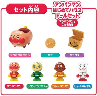 セット内容 アンパンマン、メロンパンナちゃん、カレーパンマン、 しょくぱんまん、アンパンマンごう、パン、ボックス ★